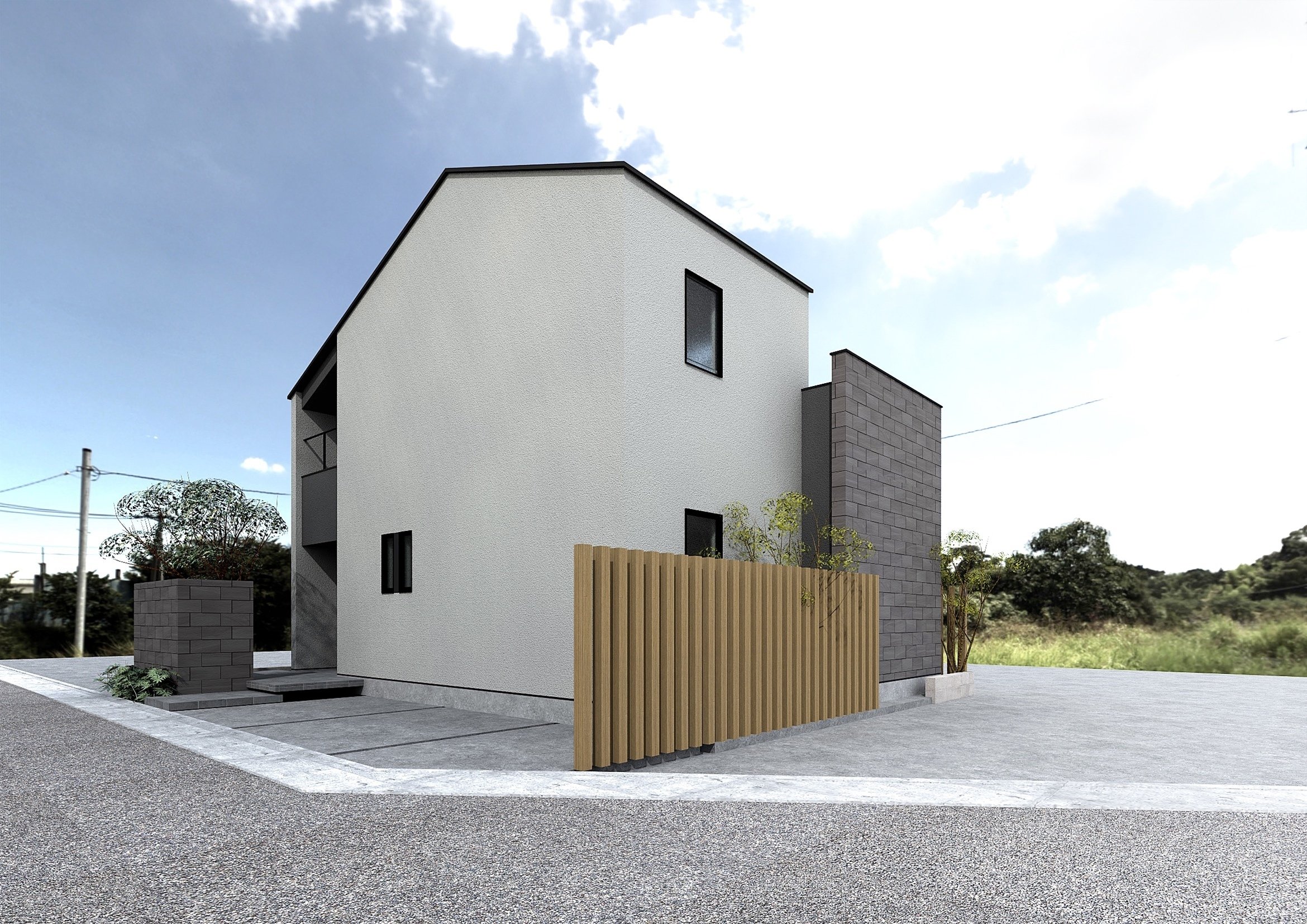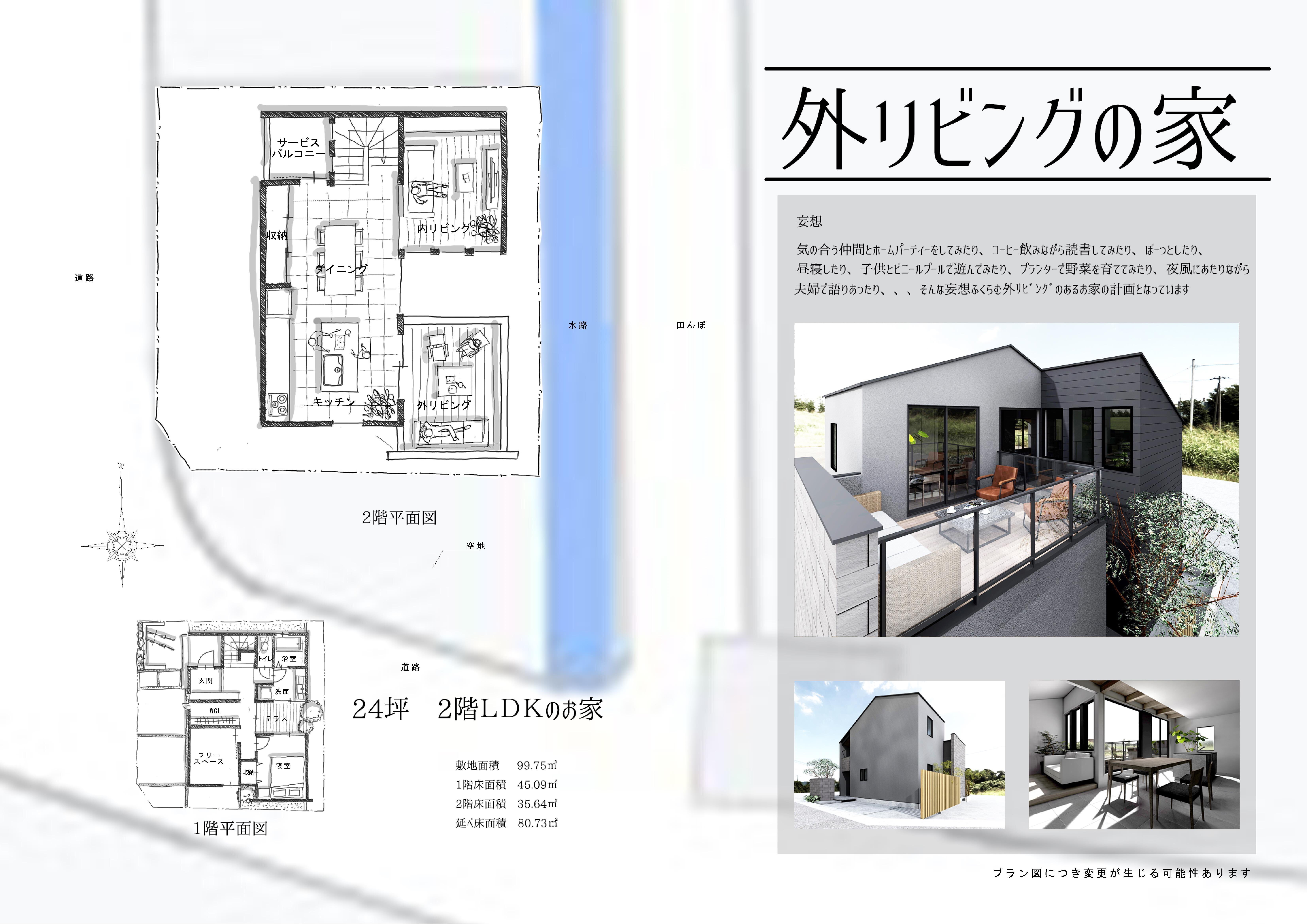 外リビングの家と名付けた計画案は2階にLDKのあるお家。