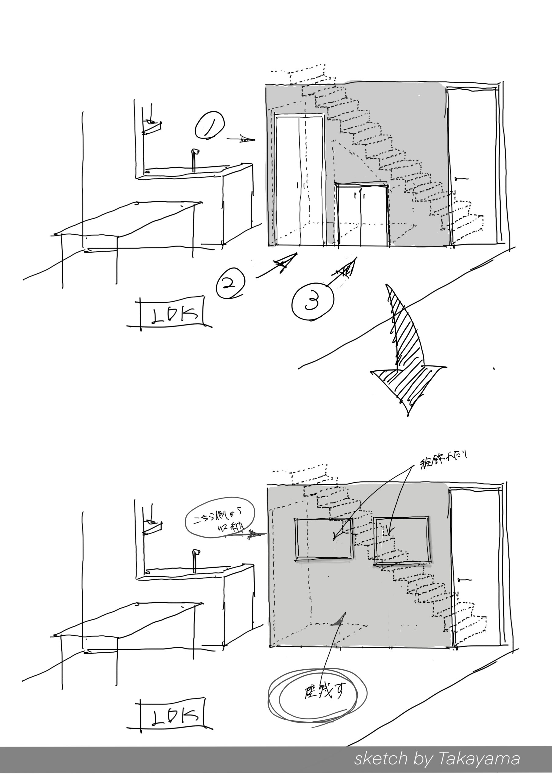 収納スペースはあるにこしたことがないので 階段下を収納スペースとして有効活用する場合は ②側からの収納ではなく ①側からの収納 ③は扉の高さも低く明らかに階段下収納ですとアピールしているようなものなので潔く諦める 【ポイント】 スッキリした壁を残す! そうすることで、子供が描いた絵や 写真など飾ることができます。 窓位置を考える時もそうですが どこにスッキリした壁を残すかがポイントになるかと思います